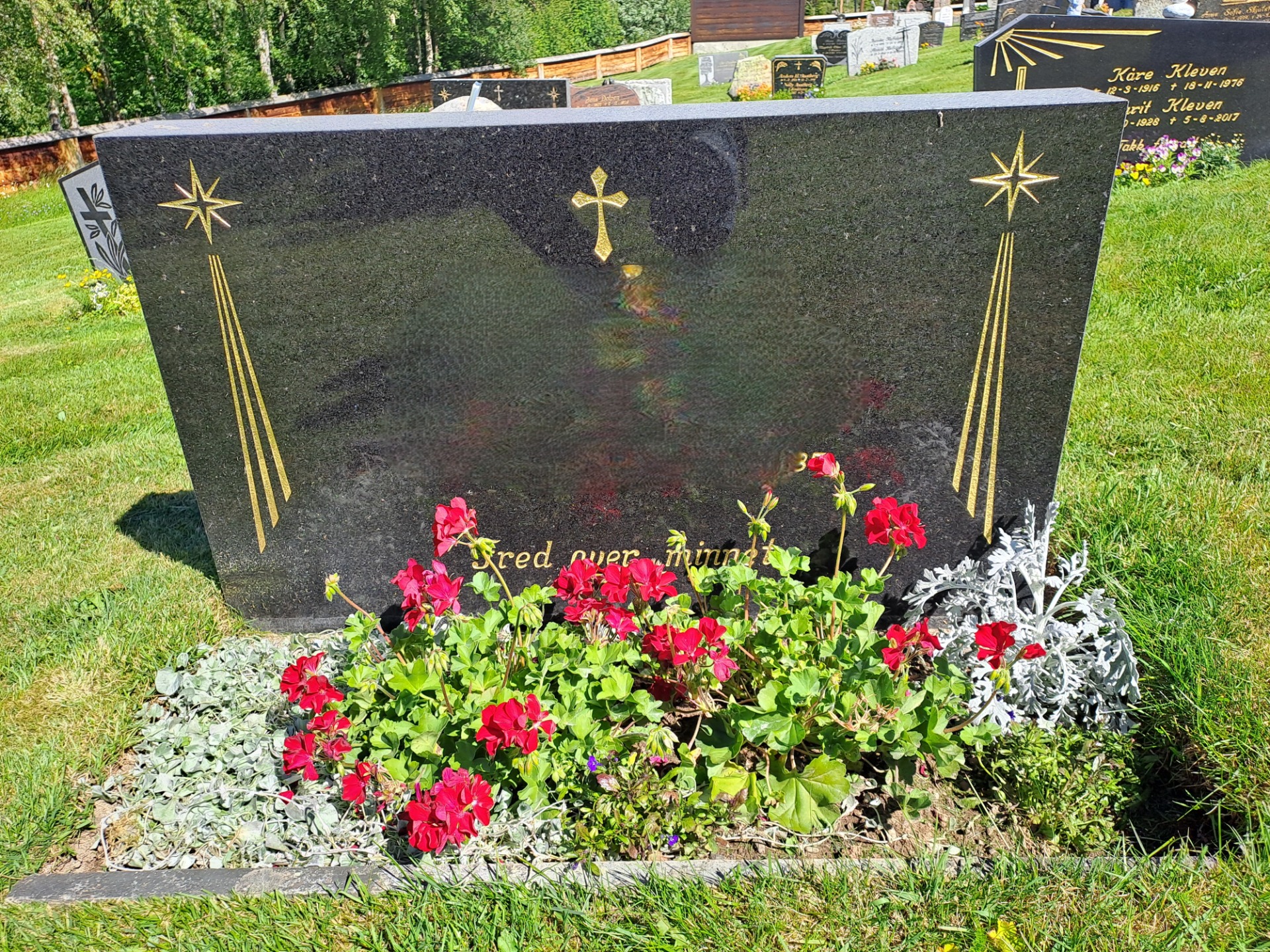 Blomsterbukett med roser eller tilsvarende settes på graven til merkedager eller spesielle anledninger.